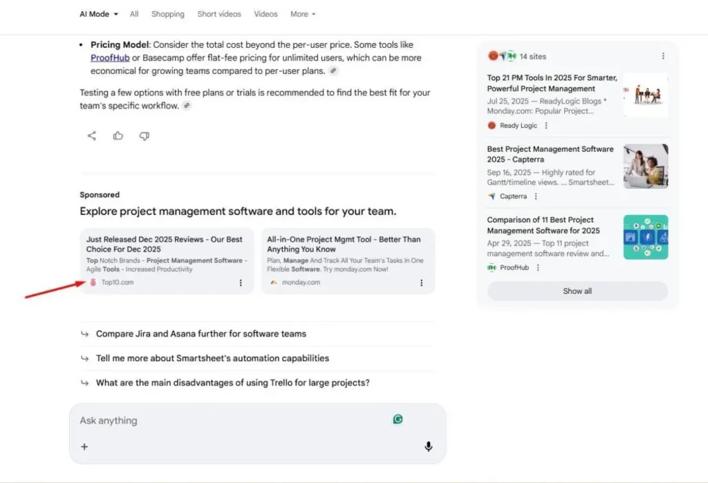 A Google azt is tisztázta, hogy egy hirdetés *vagy* az AI-áttekintéseken belül, *vagy* azok alatt/felett jelenhet meg – de ugyanazon aukció során nem szerepelhet mindkét helyen egyszerre.