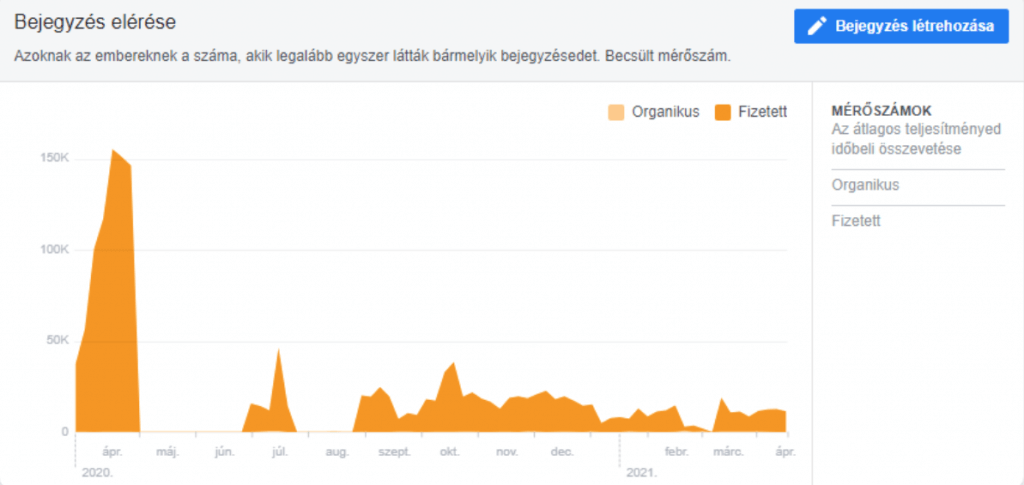 A kezdeti időszak stratégiája elsősorban az organikus és kisebb mértékben a fizetett hirdetésekre és elérésekre támaszkodik. A bejegyzések organikus elérése stabilan havi 6,6 %-kal folyamatosan emelkedik. A fizetett elérések számának mértéke erősen kötődött a PPC kampányok időszakához. Az oldal követőszámának növekedése, csak organikus módon került növelésre, stabilan havi 20-40 fővel növekszik.